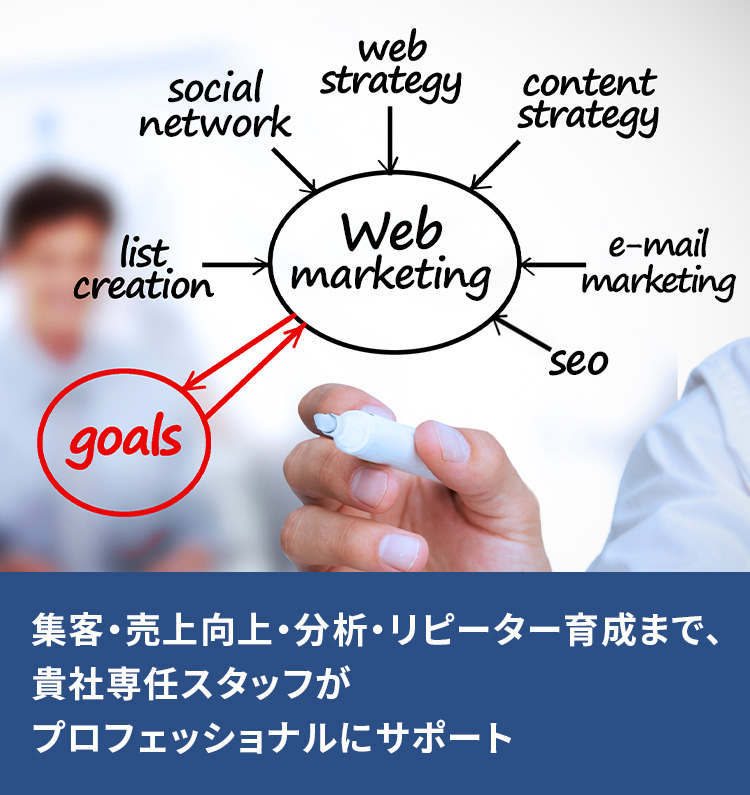 15年間の運用実績と独自のノウハウにより貴社専属の「Webマーケティング部門」として